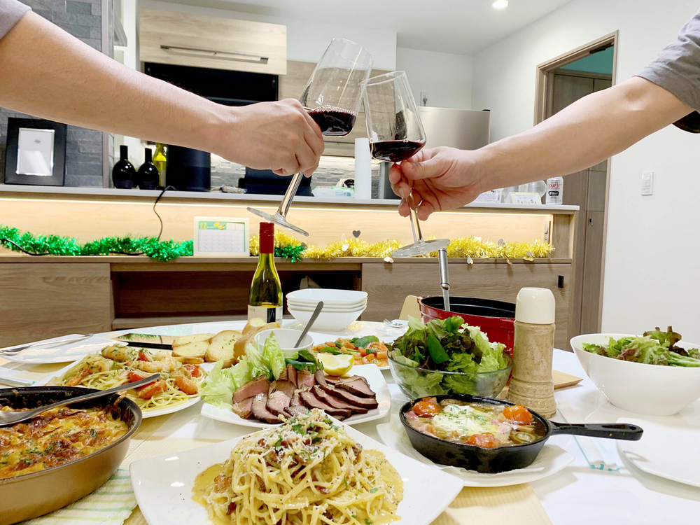 クリスマスパーティーは、期間中毎日1組に同社最新の展示場を1日貸切にするもの。参加特典として、柏崎市の商業施設「ハコニワ」内のレストラン「kitchen105」のクリスマスディナーが振る舞われる。展示場の同社オリジナルというキッチンも使用でき、自分たちで料理を作ってもチキンやケーキを持ち込んでもOK。家族や仲間とわいわいにぎやかに楽しめる。