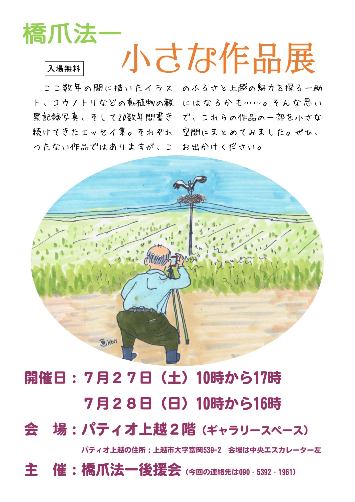 - 橋爪法一小さな作品展 パティオ上越2階ギャラリースペース(富岡) 〜28日 10時〜17時(28日は16時まで) ちらし