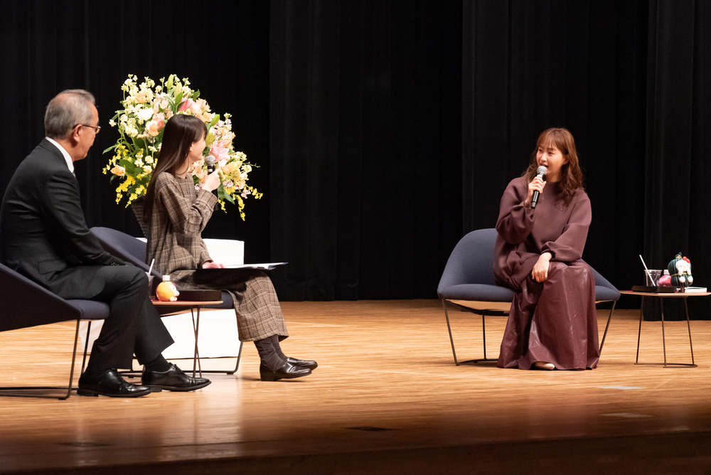 藤本さんは、「暮らしや子育て」をテーマに、MCを務めたモデルでタレントの榎本ゆいなさん(23)の質問に答える形でトークを展開した。