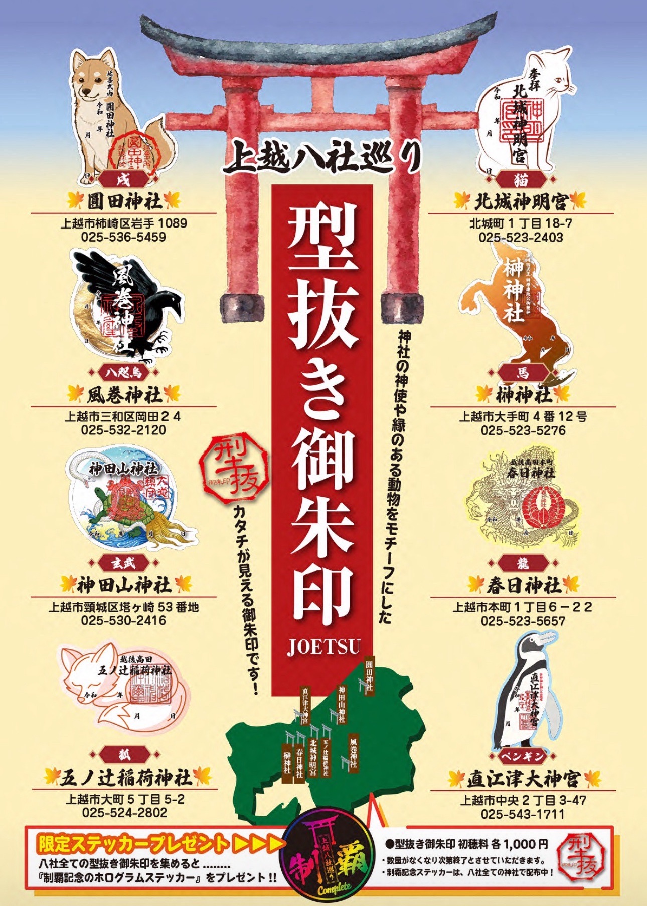 - 上越八社巡り型抜き御朱印 上越市内の8神社 *神獣やゆかりの動物をモチーフにした切り抜き型の御朱印(初穂料1000円) ちらし 記事