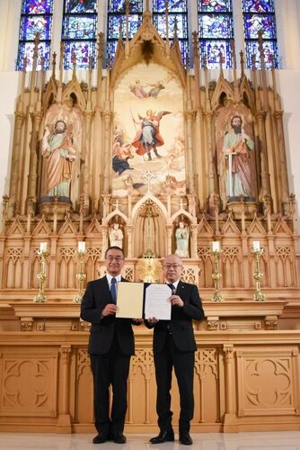新潟県上越地域で冠婚葬祭業を営む平安セレモニー(青木省一社長)は2022年8月29日、同社が所有する上越市大道福田の結婚式場「ザ・グランスイート」の聖パトリック・アルカディア大聖堂を無償で貸し出す連携協定を、上越教育大学と締結した。学生や教職員に…