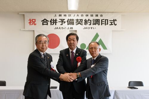 新潟県上越市のJAえちご上越(本店・上越市藤巻)と糸魚川市のJAひすい(本店・糸魚川市大町1)は2023年8月23日、合併予備契約に調印した。10月に両JAの臨時総代会での承認などを経て、2024年3月1日に新「JAえちご上越」が誕生する。 合併予備契約書に署名す…