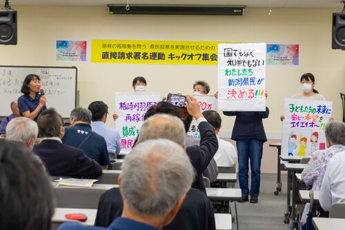 新潟県の東京電力柏崎刈羽原発の再稼働の是非を問う県民投票の実施を目指し、市民団体による県民投票条例の制定を求める直接請求の署名活動が2024年11月1日から始まる予定だ。活動に賛同する上越市民らが9月21日、同市土橋の市民プラザで集会を開き、署名を…