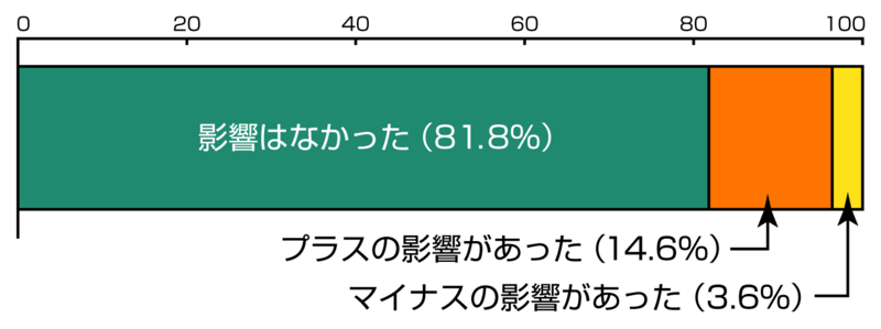 開業による事業への影響については、81.8%が「影響はなかった」と回答した一方、14.6%が「プラスの影響があった」としている。「マイナスの影響があった」は3.6%だった。