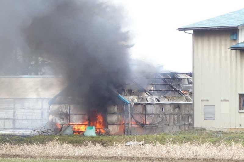 2016-03-12 上越市平岡でビニールハウス燃える ニュース 事件事故 🖨 印刷 2016年3月12日午後1時頃、新潟県上越市平岡のビニールハウス内から出火し、1棟約80平方mのうち約40平方mを焼いて同1時32分に鎮火した。けが人はいない。 燃えるビニールハウス(写真・読者提供) 上越警察署によると、 ビニールハウスは付近の住民が所有し肥料置き場などとして使っていた。ビニールハウスの中にあったプラスチック製の苗床の容器も焦げた。