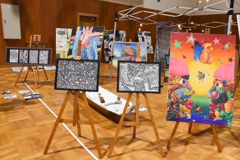 土日曜祝日には同市西本町4の直江津屋台会館で、創作活動に取り組む市民らのアクリル画、モニュメント、写真など、直江津のまちや海をテーマにした作品が並ぶ。会場では実演制作も行われるほか、イベントオリジナルグッズの販売もある。午前10時〜午後4時。