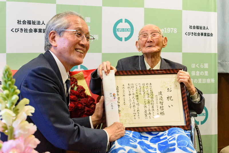 2019年1月20日に国内最高齢の男性となった新潟県上越市在住の渡邉智哲さんが2019年3月5日、112歳の誕生日を迎え、村山秀幸市長から祝い状と記念品が贈られた。
